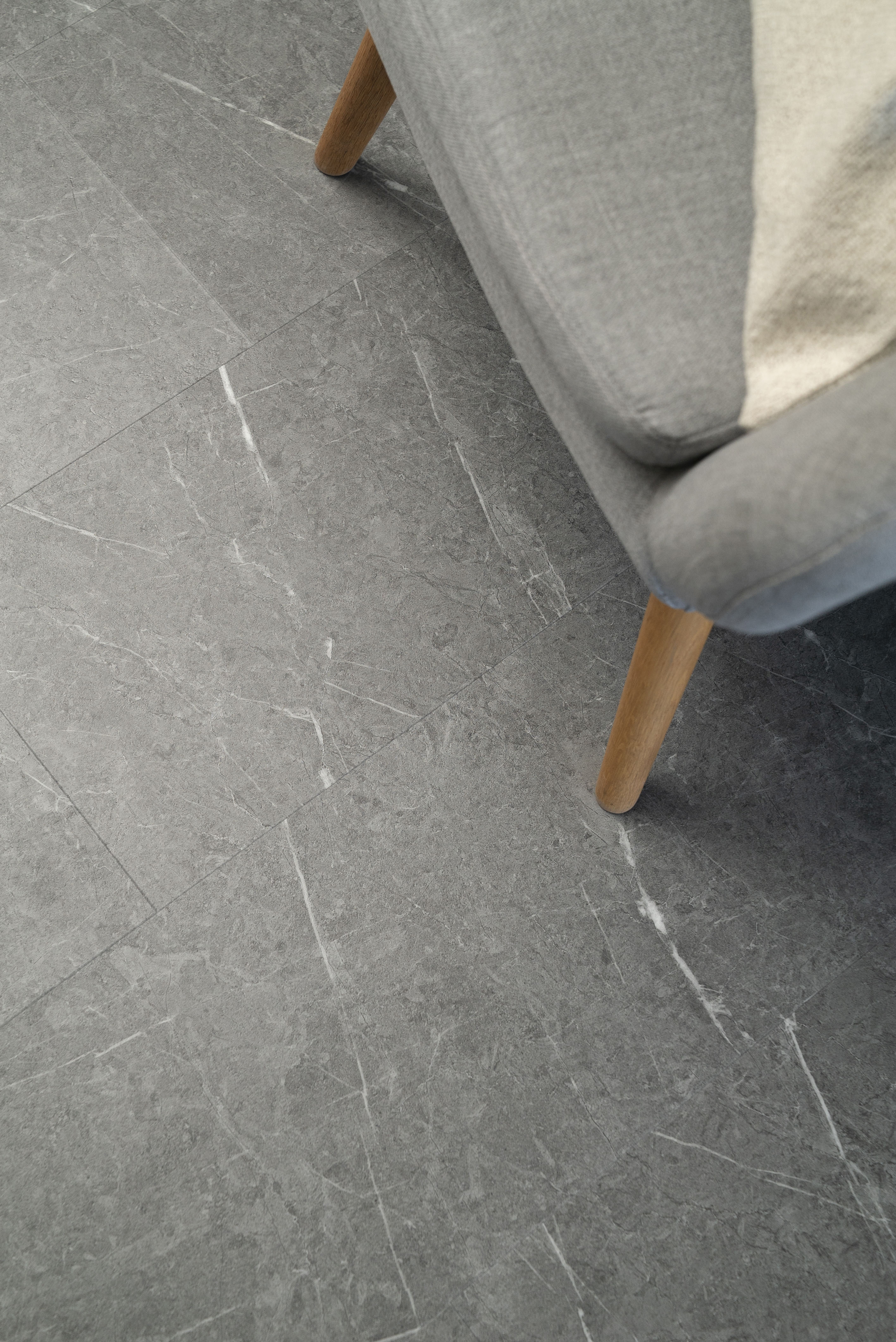 Impressive flise kombinerer det klassiske fliseudtryk med komforten og styrken fra vores populære Impressive-serie. Med et kraftigt 0,70 mm slidlag og lyddæmpende korkbagside er gulvet ideelt til både erhverv og boliger med meget trafik. Den naturtro 3D strukturerede overflade giver et realistisk fliselook. Overfladen er fri for ftalater og let at vedligeholde. Det brugervenlige 5G kliksystem sikrer hurtig og enkel montering uden brug af lim.