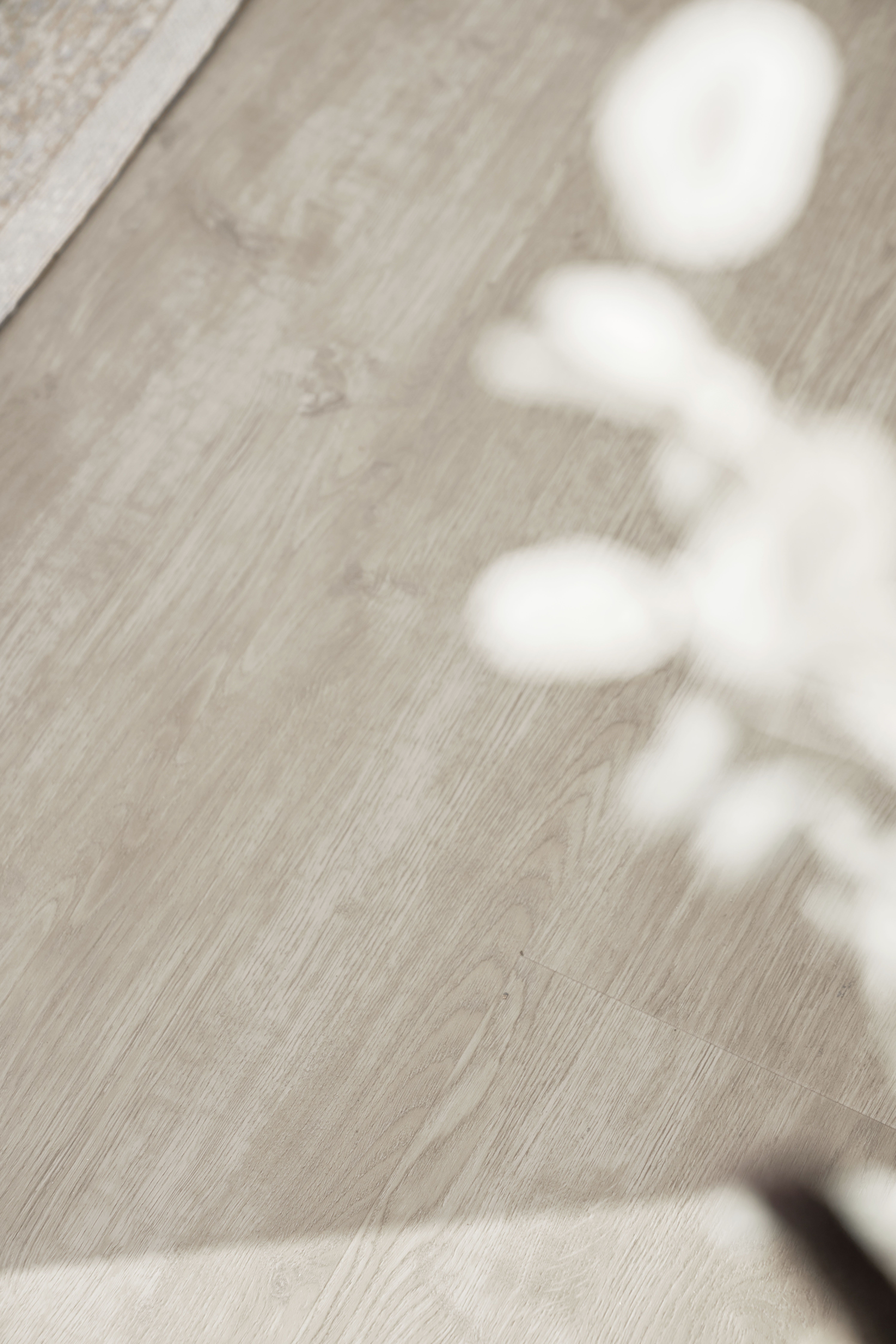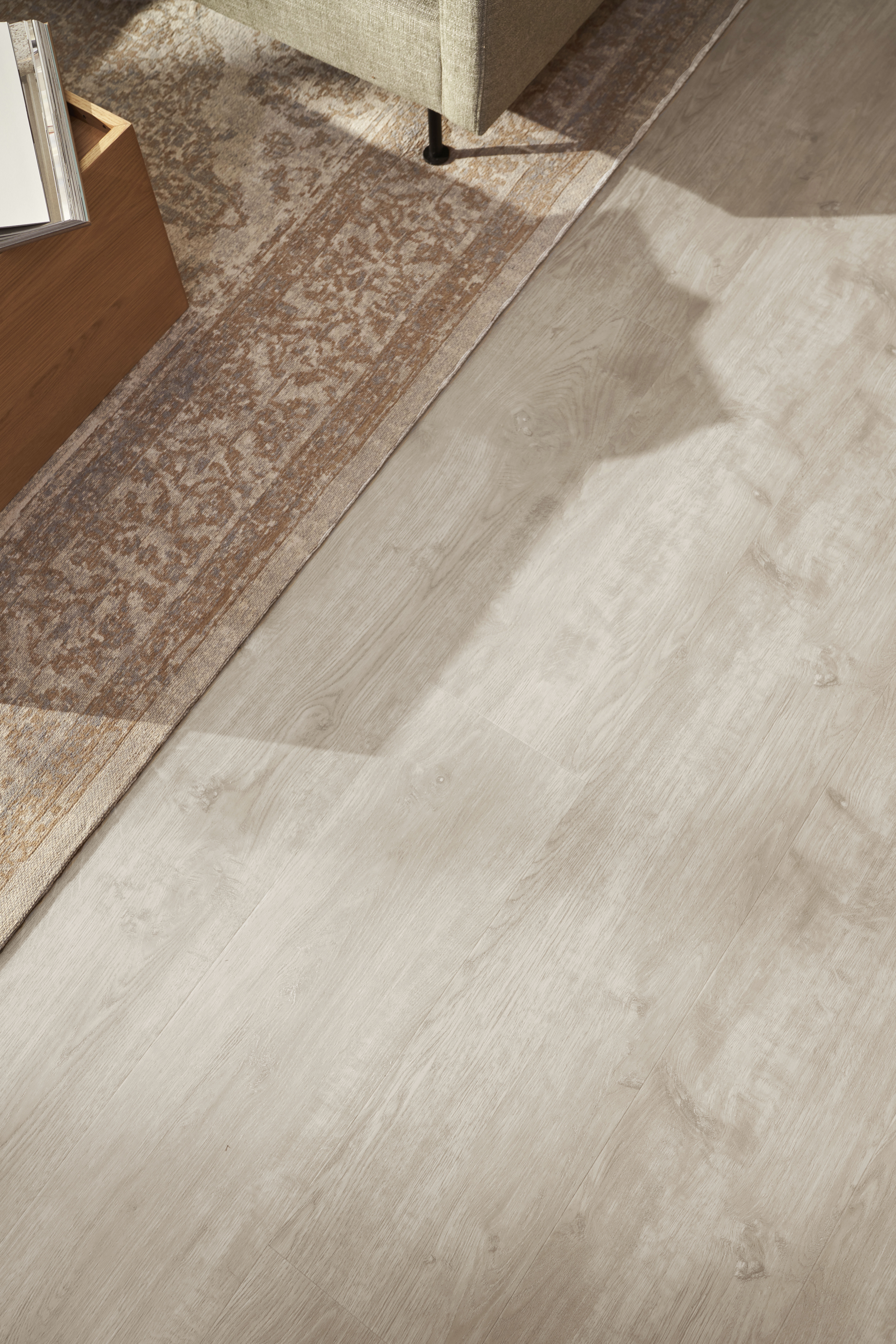 Med Impressive designgulv fås et slidstærkt gulv med 0,70 mm kraftigt slidlag og kork på bagsiden, - og så er det godkendt til montering gennem døråbninger.