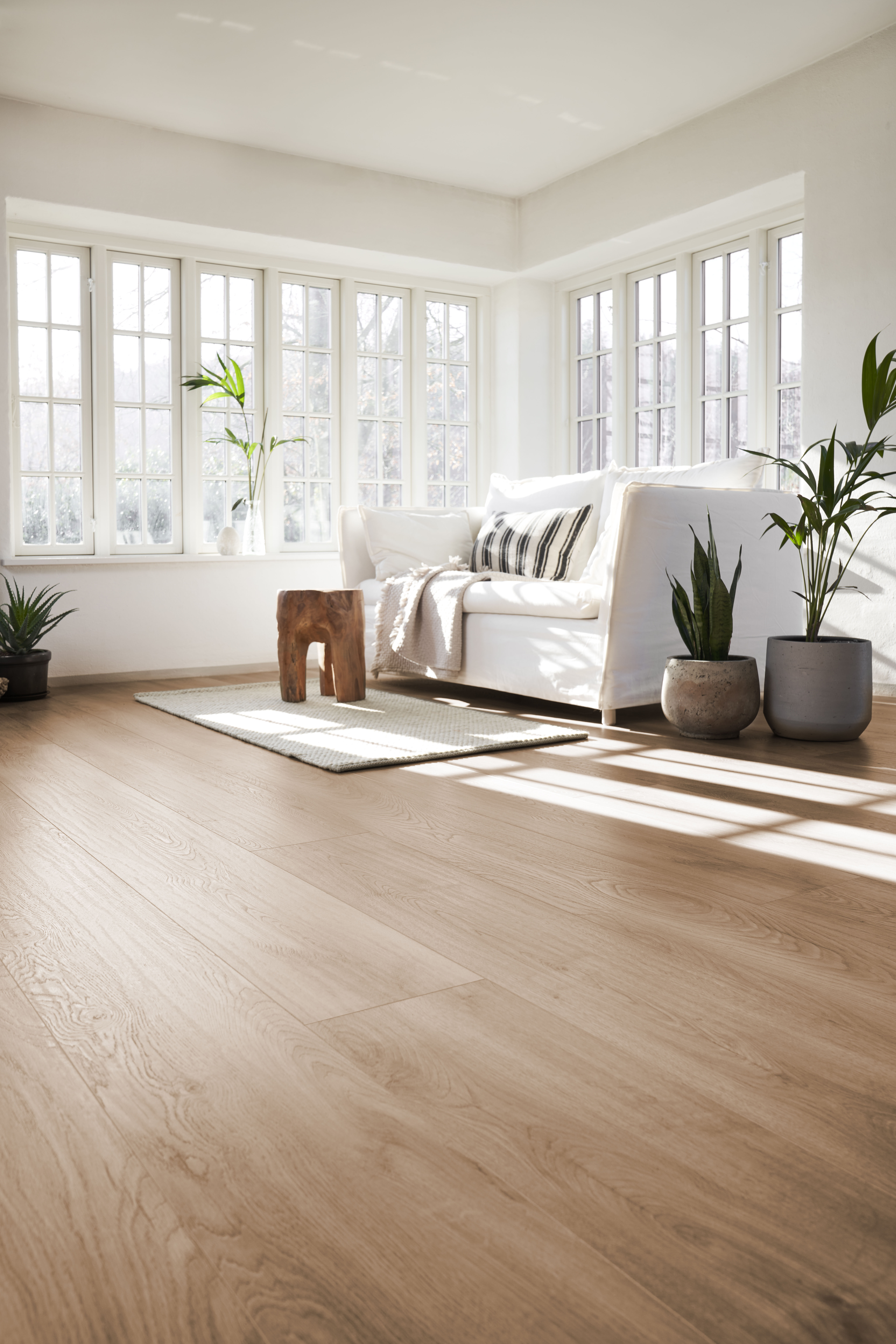 - Lange og brede planker med en vedligeholdelsesvenlig overflade