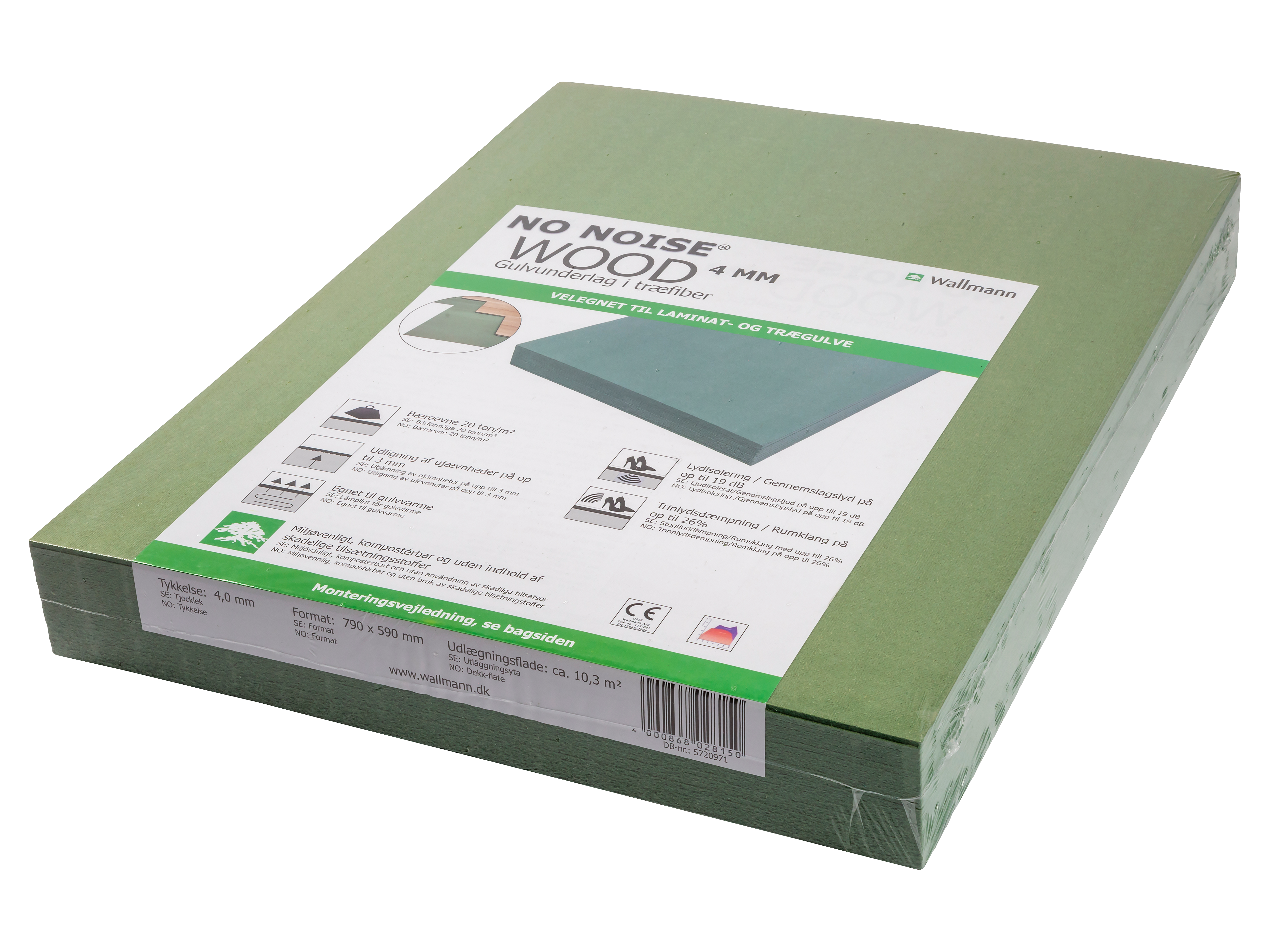 No Noise® Wood er et miljøvenligt gulvunderlag af naturlige træfibre. Høj lydisolering, holdbar og produceret i Europa.