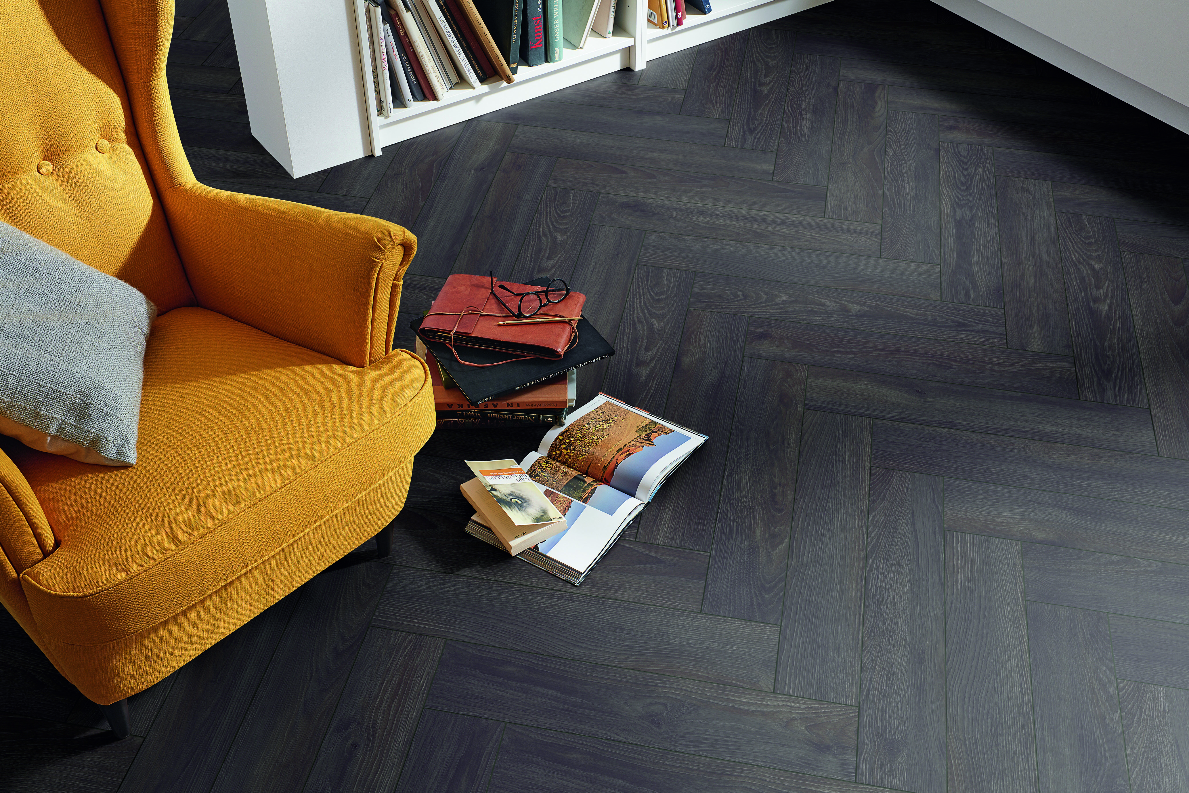 - Klassisk sildebensmønster i laminat