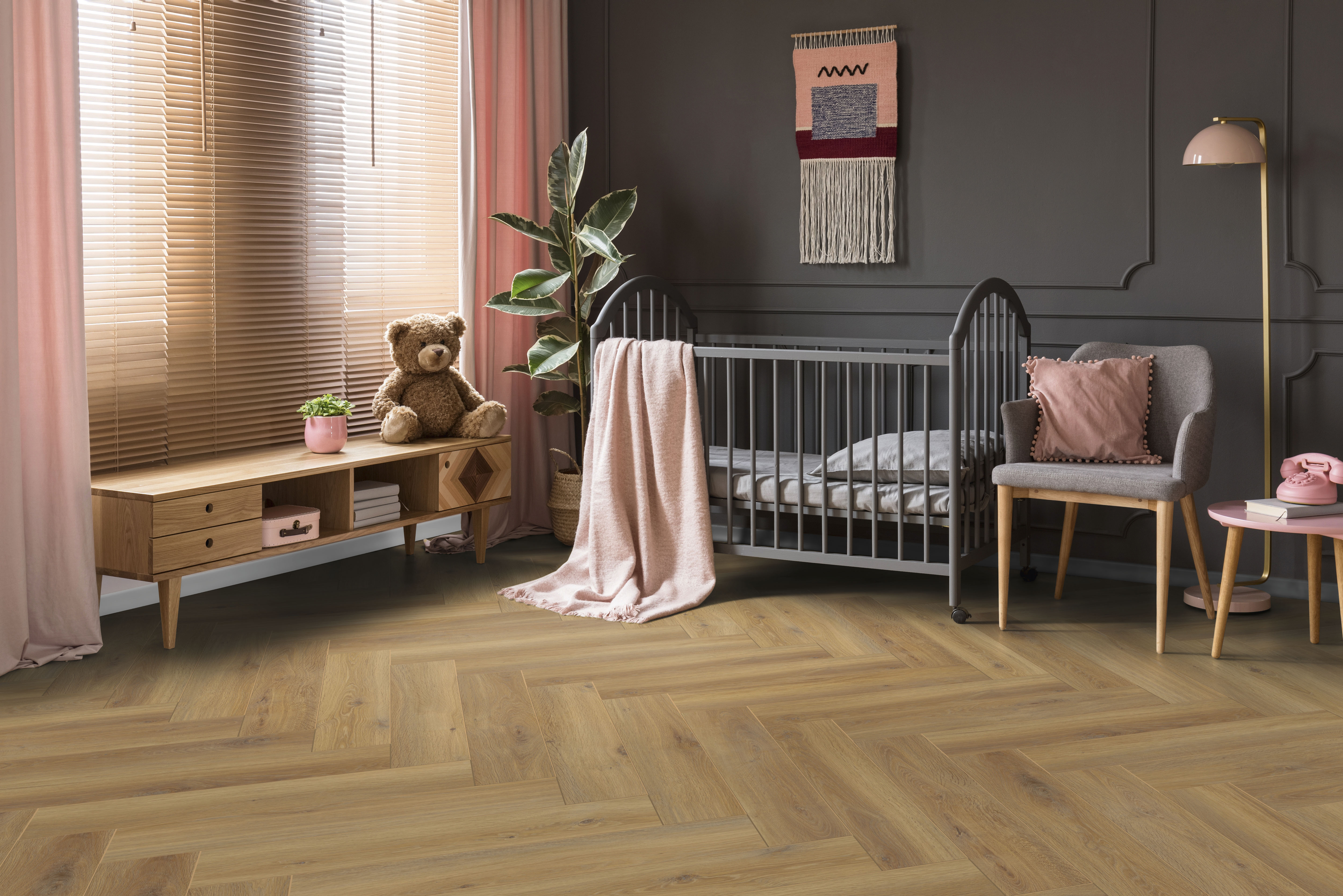 - Klassisk sildebensmønster i laminat