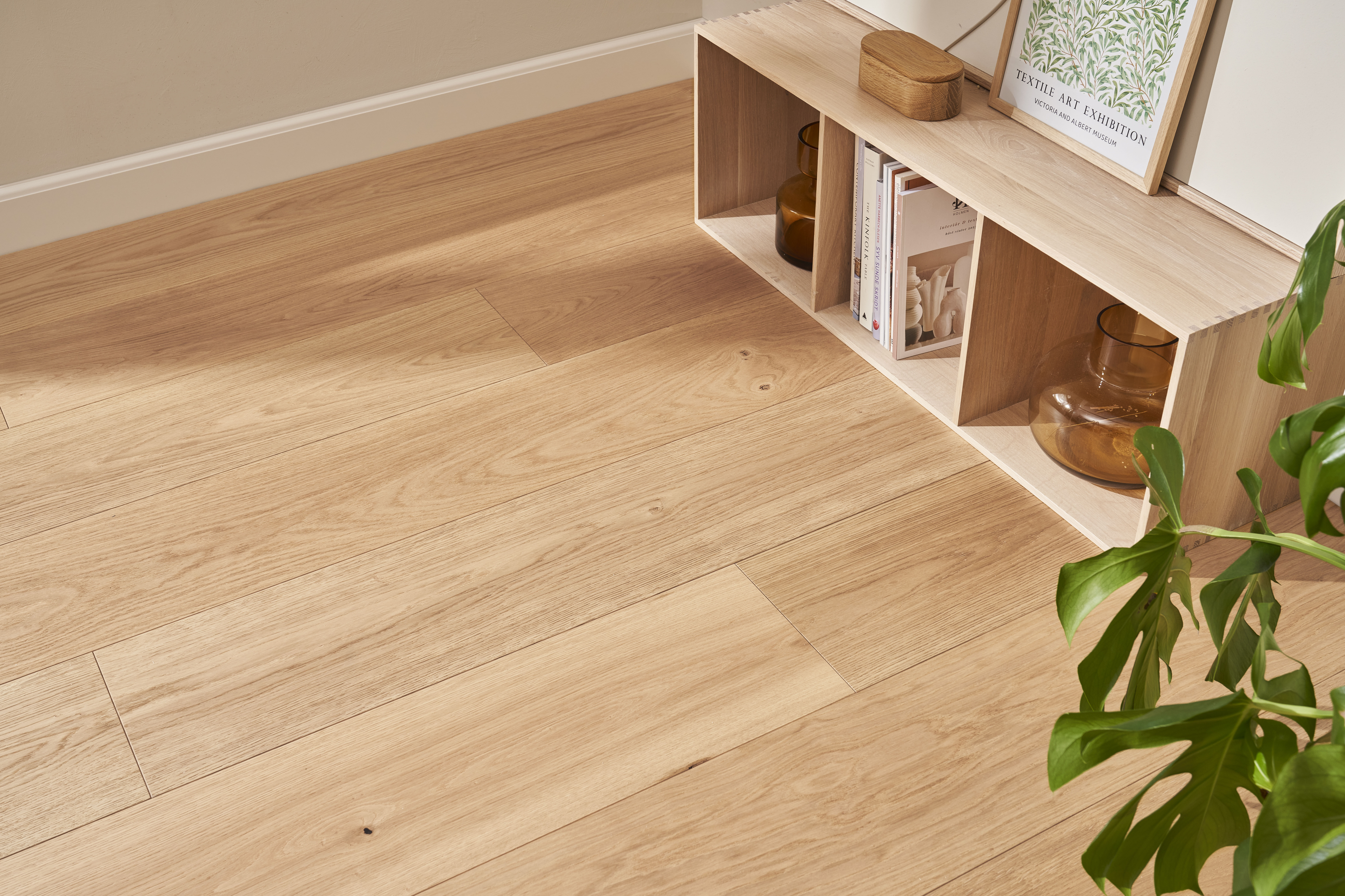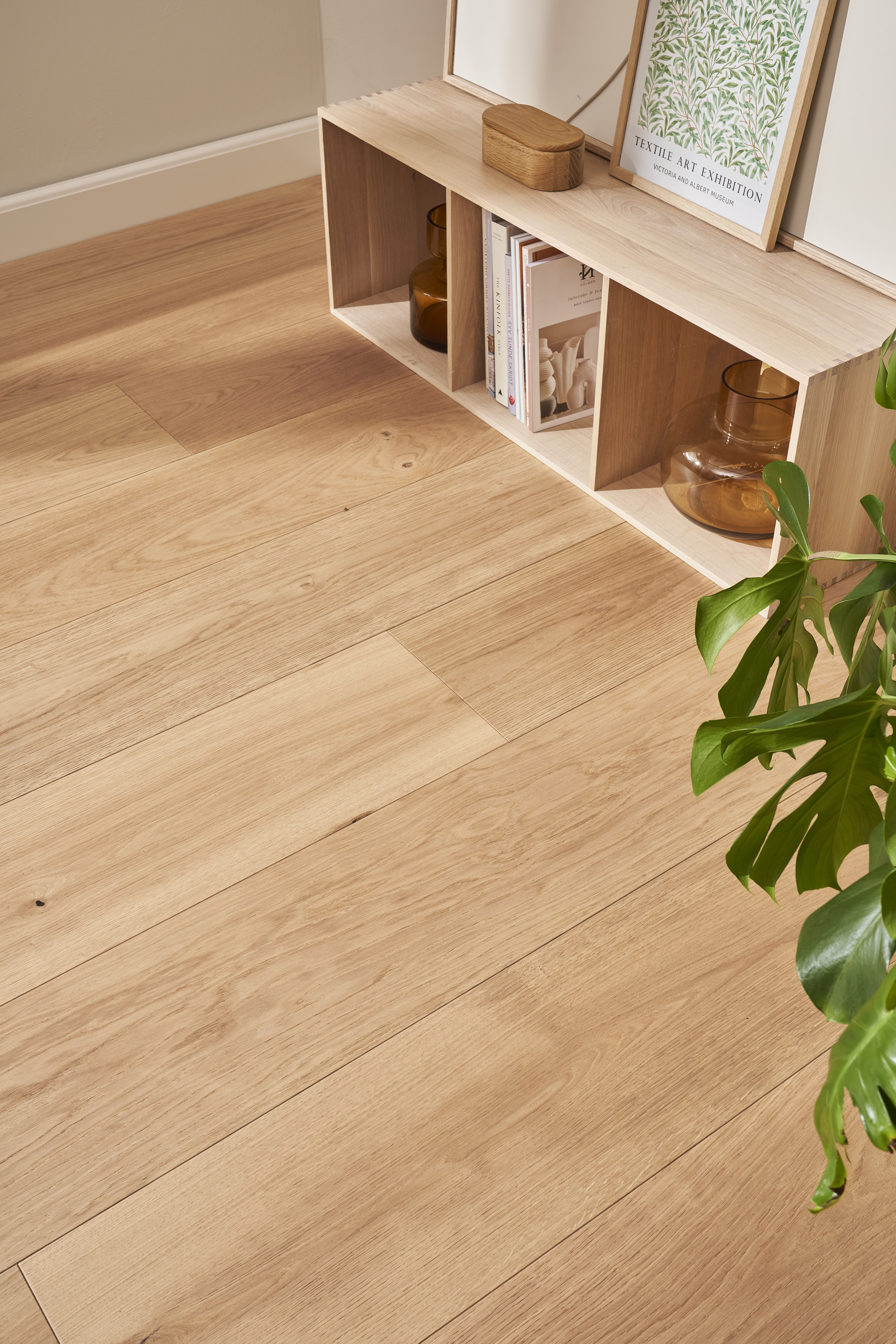 Eksklusive Herregårdsplanker med sans for deltaljen. De lange og brede planker tilfører ekstra karakter og får rummet til at syne større.