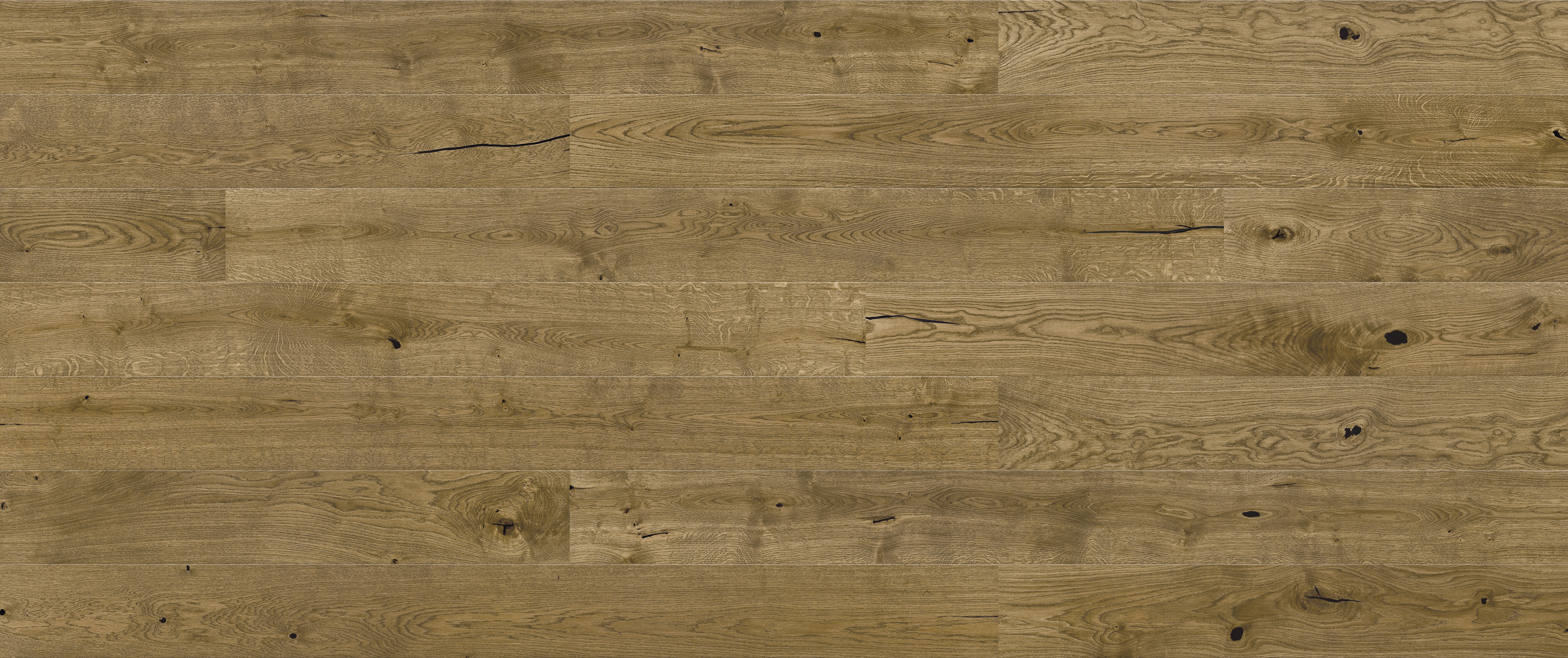 Klassiske, brede ege lamelplanker med børstet overflade og naturligt udtryk. FSC® certificeret, velegnet til gulvvarme og nem montering med 5G kliksystem.